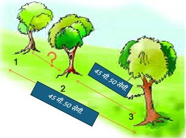 - यह समझना कि क्या दिया गया है (पहला पेड़ से तीसरे पेड़ की दूरी एवं दूसरा पेड़ का तीसरे पेड़ की दूरी);